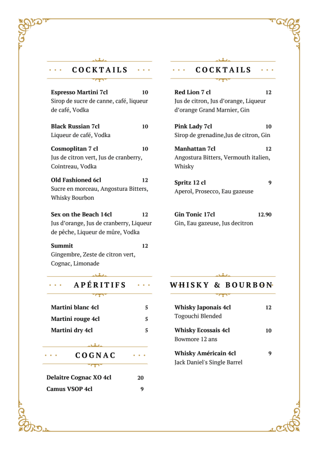 Menu Royal€165 per guest