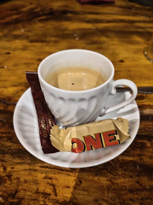 - 2 cafés, 2 macarons, 2 fatias de bolo de chocolate