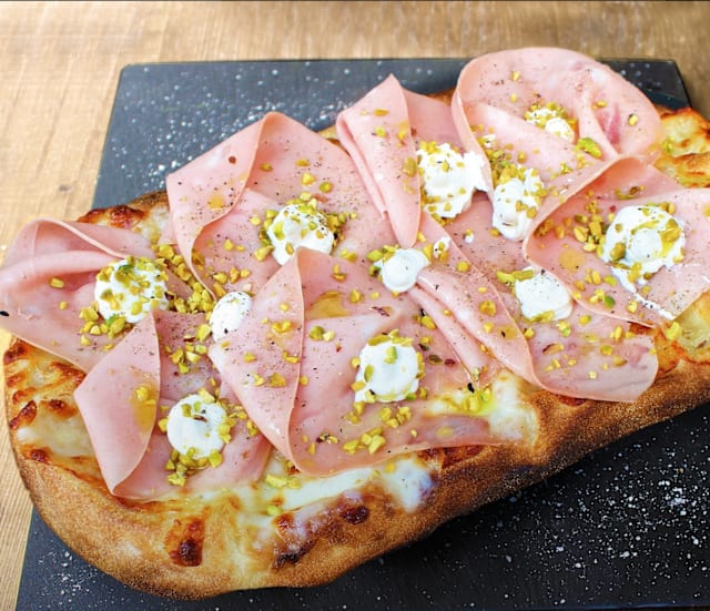 Mozzarella, ricotta fresca, mortadella bologna, granella di pistacchio di bronte