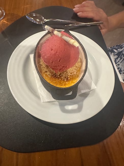 9/10All members of staff were very friendly and welcoming. Roberto was particularly attentive to our requests, and the service was great! The location was lovely, with nice views of the golf course and the sea. All in all, my husband enjoyed his birthday lunch - especially the chocolate brownie with ice cream and candles!!