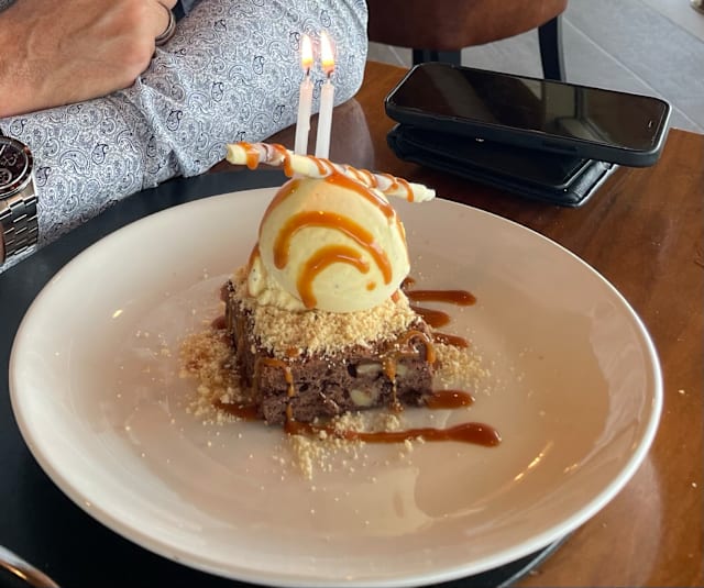 Dear Mr. Topp, Thank you so much for your wonderful review! We’re delighted to hear that our team, especially Roberto, made your visit special with attentive service. It’s great to know you enjoyed the beautiful views of the golf course and sea, and that your husband had a memorable birthday lunch—those brownies with ice cream and candles do make a perfect celebration treat! We look forward to welcoming you both back to West Cliffs soon. Warm regards, Club House West Cliffs Team
