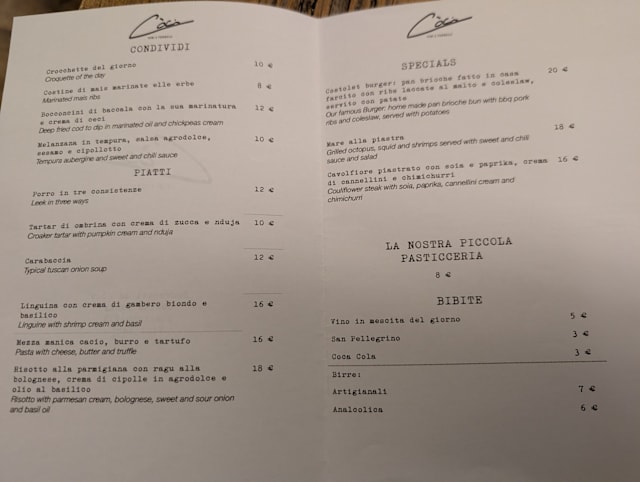 10/10I had a wonderful dinner at Còca Vini e Fornelli. I started with the melanzana in tempura – perfectly crisp, light, and full of sweet-and-sour flavour. The mare alla piastra was outstanding – beautifully grilled octopus, squid, and shrimp, with just the right balance of smokiness and gentle heat. I finished with the piccola pasticceria, a lovely assortment of miniature desserts, and an espresso to close. Everything was beautifully presented, the service was friendly and attentive, and the atmosphere was elegant yet relaxed. Exceptional quality for the price – €40 for a full three-course meal with coffee. Highly recommended; one of the best meals I’ve had in Viareggio.