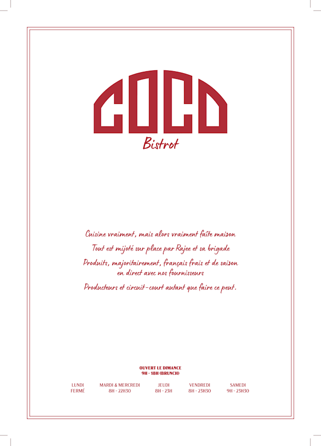 10/10French Coco is officially my favourite restaurant in the 15th! It's cosy, the food is home-made and delicious, it's even child-friendly ( as a parent that is so helpful) and the waiters and welcoming. I cannot wait to have my next gathering there!