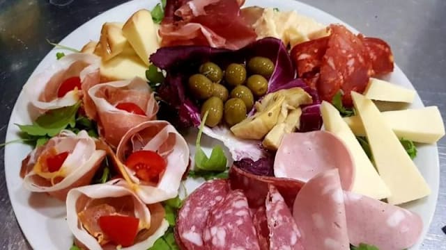 Mixed cured meats, typical cheeses, touch of parmigiana, barchetta di caponata, sicilian with tuma cheese and anchovies, chips, mixed pickles and triangles of focaccia