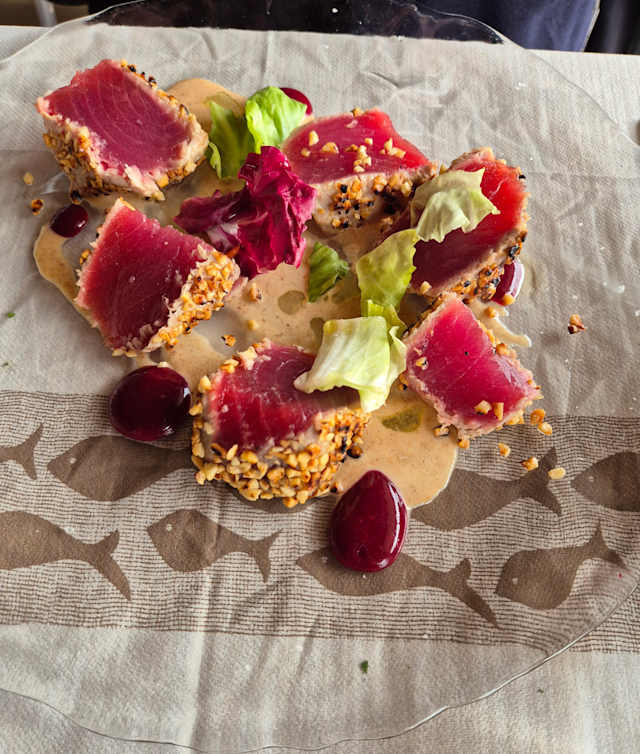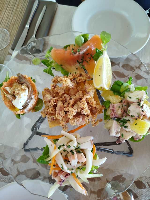 9.5/10Impressive terrasse over the see. Food is really good and with a lot of care. We were two and we went twice. Grilled vegetables were amazing, fish fresh and proper portions.