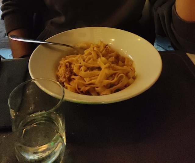 3.5/10Terrible experience, wouldn’t recommend to anyone. First, the waitress took for ever to take our order even after we called for her. She looked at us and just ignored us. After we finally made our order, they brought the appetizer and first dish at the same time. So my partner had to eat her pasta with the appetizer at the same time. My main course never arrived, I waited 30 minutes for it and it never came. When I stood up to pay, and told the cashier about my plate, she didn’t even acknowledge the fact that they forgot about my plate. We paid 28€ for an appetizer, a simple pasta, a water and a coke. We have lived in Bologna for nearly a year and have never had an experience as terrible as this one. We also did not receive the fork discount offered