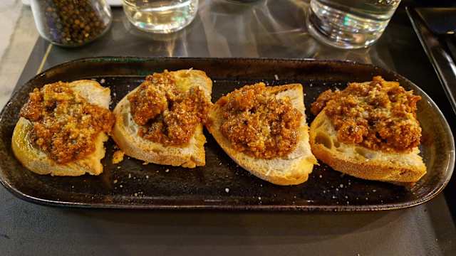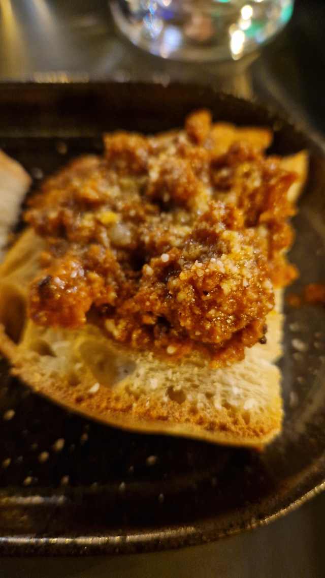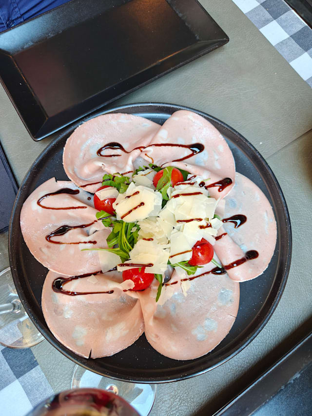 6.5/10Nice looking place with bland food. For the first time in Italy I had to put spices to make my food taste better. Even lasagna was insipid. Wine was good though. The vibe in the place is so heavy. The guy who was looking like the owner was so unhappy. The best thing about the place is our cheerful waitress Tiziana.