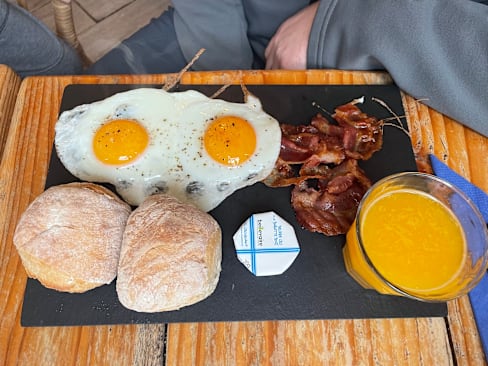 5.5/10This place is way overhyped. Waited 40mins to get 4 premade pancakes, 4 coffees, two pots of airport jam, 4 eggs. The bread is good though. Paid 120 euros to feed 4 people the most basic of breakfasts. Terrible deal for the money.