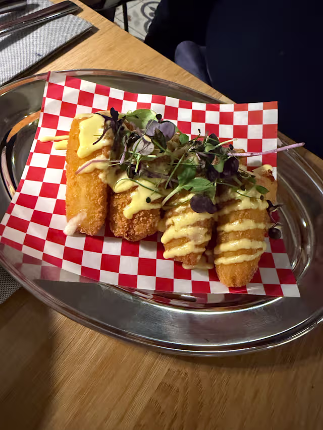 - Pane in cassetta, mozzarella, impanata e fritta con maionese alle acciughe