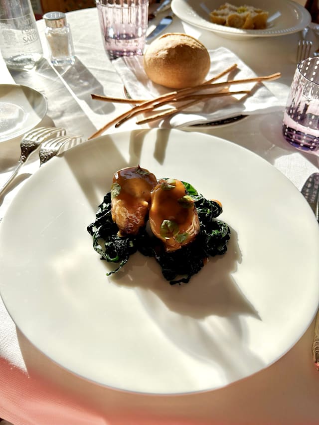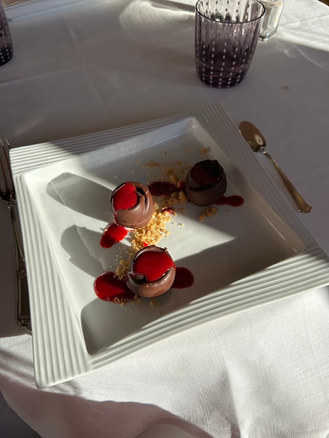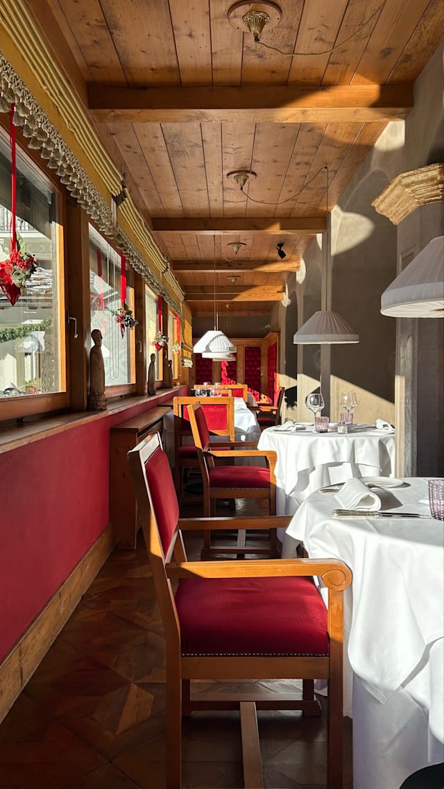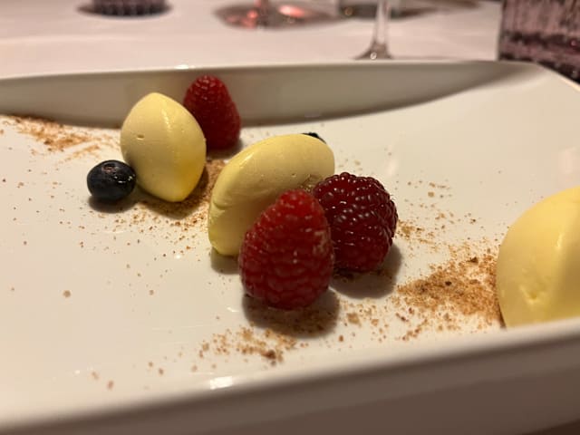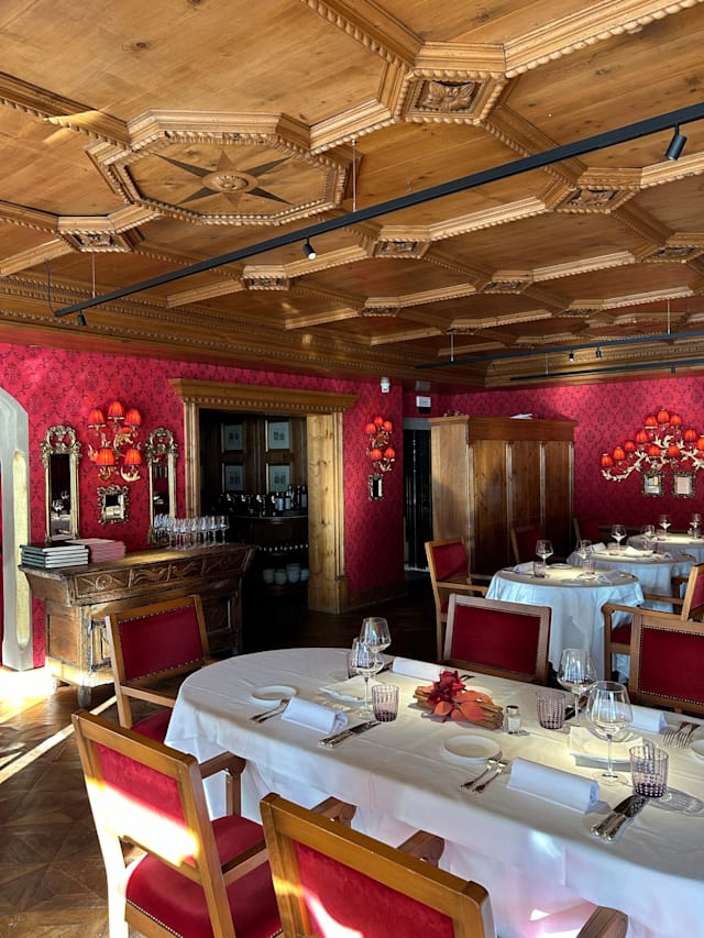 Food was excellent. A couple of contemporary hearty vegetarian dishes. Service was below par, especially one of the waiters (the younger one) was quite annoying. He managed to take away our plates twice while one of us was still eating. He also refused to serve one of us coffee at our table while the others were having their dessert: 'you can do that in the bar". We worked our way around him and tried again with the friendly other waiter for coffee, he took care of it right away. After two hours (around 10pm) they started to give unsubtle hints that we were supposed to leave. Second time here for us. Food is good, service is bad. Doesn't reflect the standards of this very nice hotel.