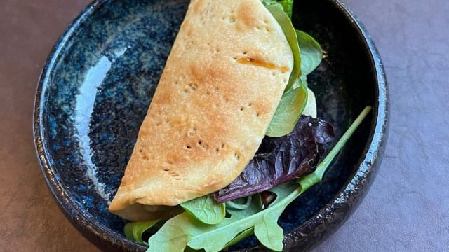 Focaccia al vapore: burrata, crudo, cipolla caramellata