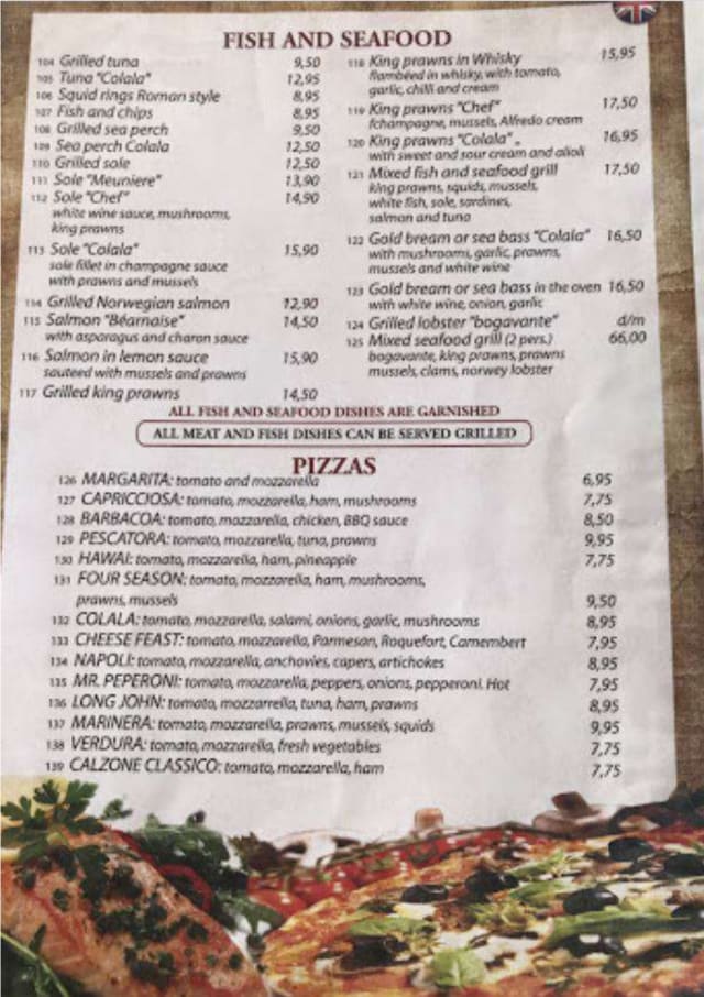 9.5/10Another great visit to Colala. The food is very good (we had sirloin steak and seafood paella). Good value for money and a really nice welcome into the restaurant l. It was good to see a lot of the same staff as previous times. The only slightly negative thing on this occasion was we were not asked if we wanted a dessert as it seemed they were quite busy and forgot to check. Apart from that, everything was great.
