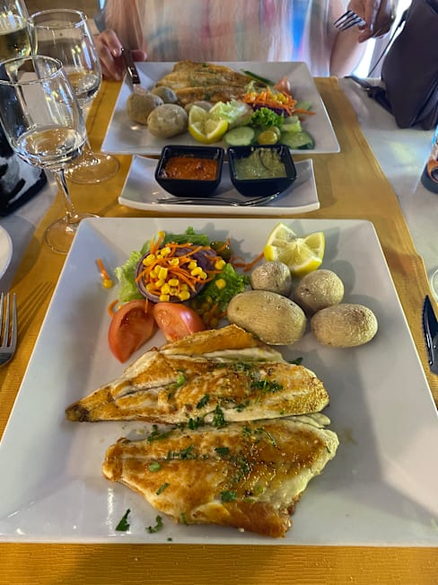 9.5/104 of us enjoyed a meal here last night. 2 had curry with rice & chips, ample amount for 1 of them, the other said there wasn't quite enough curry. My husband had chicken in pepper sauce, he thought more than enough chicken. I had grilled tuna with fried garlic potatoes. We had a litre of sangria between 3 of us plus a pint of beer. Total bill was £74. Have been here before and definitely recommend it. Great food & staff.