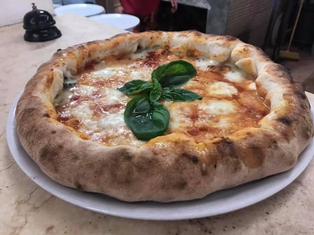 - Mozzarella, funghi champignon, salsiccia, granella di pistacchio, olio evo