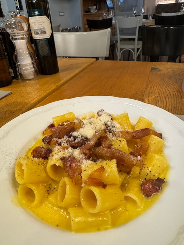 9/10The restaurant was lovely, and we were promptly escorted to our table upon arrival. I informed the staff that I do not eat gluten, and they were very helpful in guiding me through the menu. The gluten-free selection was impressive, giving me plenty of great options to choose from. The food was absolutely delicious, and the wine selection was equally impressive. We went with a recommendation, and it did not disappoint. I was particularly pleased to learn that they have their own winery, **Casale del Giglio**, which I highly recommend—especially their reds and dessert wine. Overall, it was a fantastic dining experience. Great food, excellent wine, and attentive service.