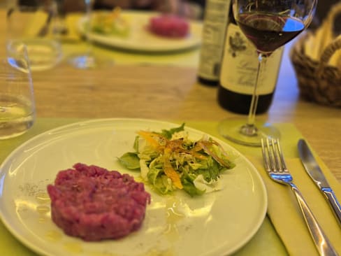 10/10A heartfelt thank you to all the staff at Collina Verde Bistrot for an unforgettable experience. We had the best fresh, handmade gelato we've ever tasted—truly a revelation. And what can we say about the battuta di Fassona? The meat was incredibly tender and bursting with rich, refined flavor. The wine list was equally impressive, offering an exceptional selection that paired beautifully with our meal. Every detail was sublime, from the presentation to the ambiance. What truly elevated our visit, however, was the genuine care and thoughtfulness shown toward my partner’s visual impairment. The team went above and beyond to ensure we felt comfortable and welcome, with such kindness that it warmed our hearts. This is more than just a restaurant—it's a place run by generous, soulful people who clearly love what they do. Highly recommended. We'll be back.
