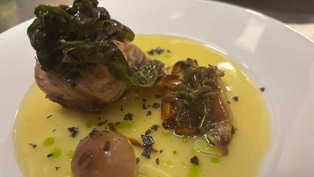 - Tortiglione di gragnano crema di lische bianche acciughe del cantabrico e tartufo bianco