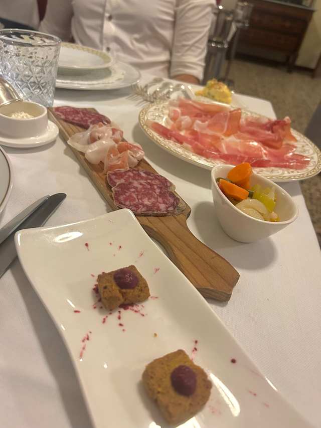 Una profumata ed appetitosa composizione di culatello "colombo" 24 mesi prosciutto di parma, strolghino di culatello e salumi di stagione in tagliere