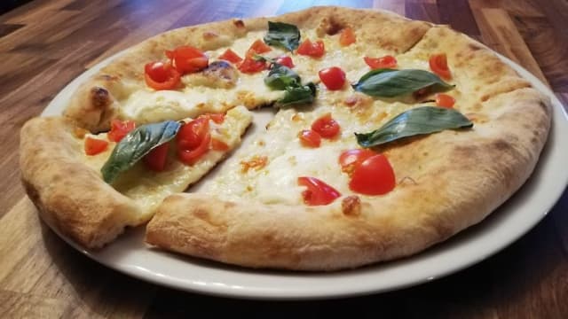(Tomate, mascarpone, lard, roquette, flocons de parmesan)