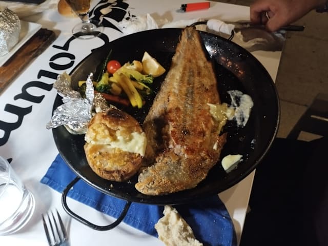 10/10Delicious meal. Fish was cooked to perfection and the vegetables were tasty. And we order paella for one. Super little restaurant.