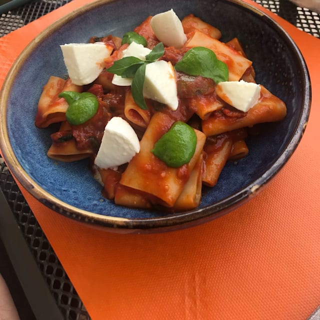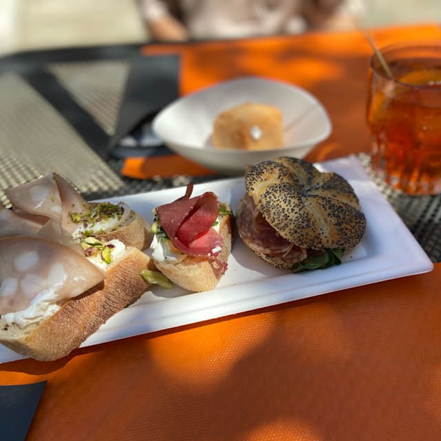 9.5/10The setting is stunning, with a choir on the background(not always the case!) The food is different to the italian kitchen. No pastas on the men! Instead, disches with more international and and middle eastborientation. I had grilled octopus with quinoa and vegetables and melanzane alla parmigiana. The combi is a great place to stay too. A luxurious and hip ‘youth hostel’, set in an old convent.