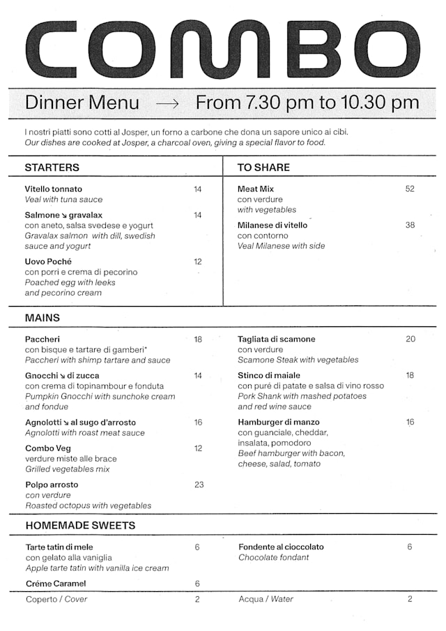 Yes, Combo Torino is offering 20% off the 'a la carte' menu Reserve your table and enjoy your special discount now on TheFork!
