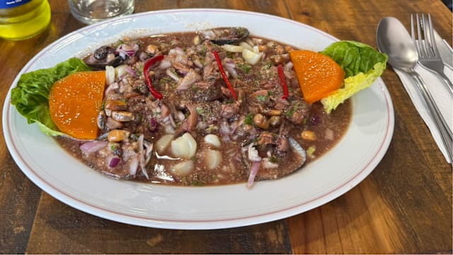 A peruvian classic made with fresh fish, seafood, lime juice, red onion, chili, and cilantro.