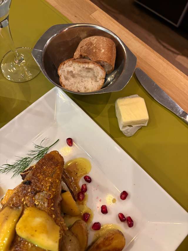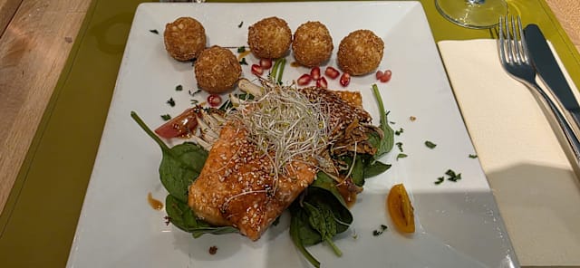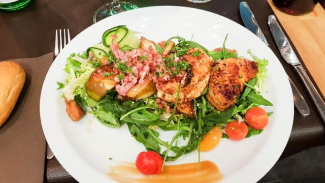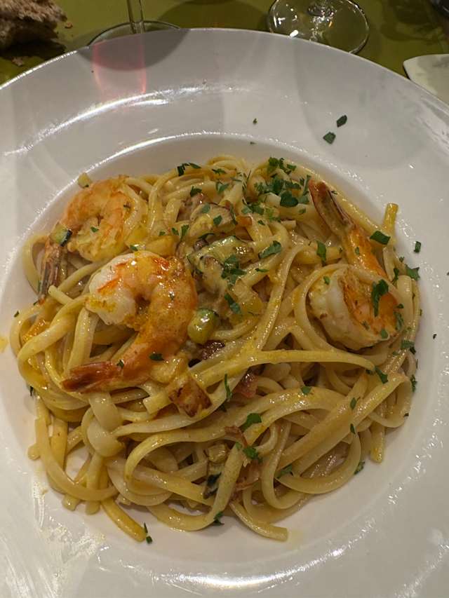10/10Very nice and friendly owners, I booked a table for 6 and we were one hour late but they still held on to our table. One of us had a dog and dogs were also allowed. Great service and delicious scampi a l'ail and also the main course - ravioli a la truffe et ricotta it was so delicious and fresh. The cocktail maison is prosecco with violet liquor and it was exquisite. Will definitely go back there again.