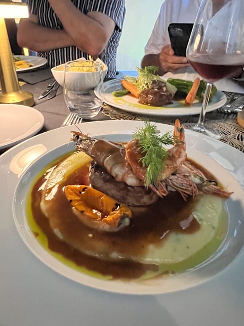 9/10We were warmly welcomed and seated at a table for 8. Very nice! The service was prompt and thoughtful. Our servers, Andre and Ricardo, were careful to get everything right and very personable. Our appetizers were great and the local wine and gin was excellent! Our entrée s were top notch- codfish, steak and prawns. We finished off with a variety of yummy desserts passed all around around. The somalier and other servers completed the team. We can't recommend this restaurant enough!