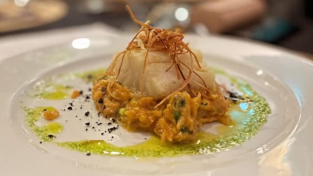 - Tranche de robalo baseado com alho francês salteados em molho beurre blanc
