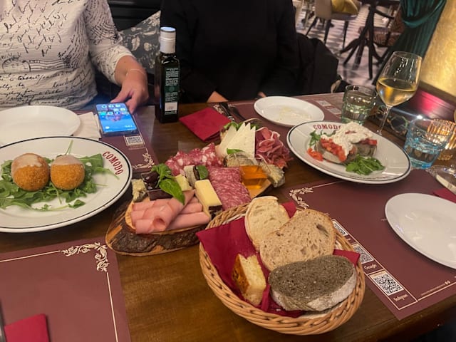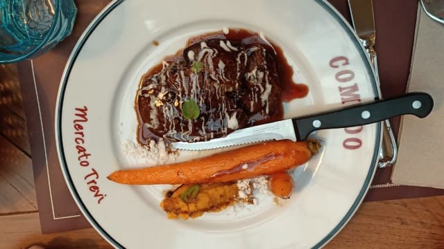 10/10+1We flew in from England to spend my wife’s birthday in Rome. I pre booked a table and wow what a beautiful venue. So much character and although in a busy tourist spot the service, friendliness and care cannot be faulted. The food was exceptional, authentic in an atmosphere that screamed “ Italiano “ As it was my wife’s birthday the entire staff sang to her and presented her desert with a candle. This completed an absolutely perfect evening. To add importantly, when we were presented with the bill we were most surprised at how reasonable the evening was. We highly recommend Comodo Mercato Trevi. Mike & Amanda Wild Cape Town South Africa