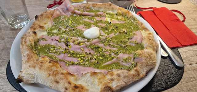 - Bufala campana D.O.P, prosciutto crudo san daniele, stracciatella, granella di pistaccchio, basilico, olio EVO