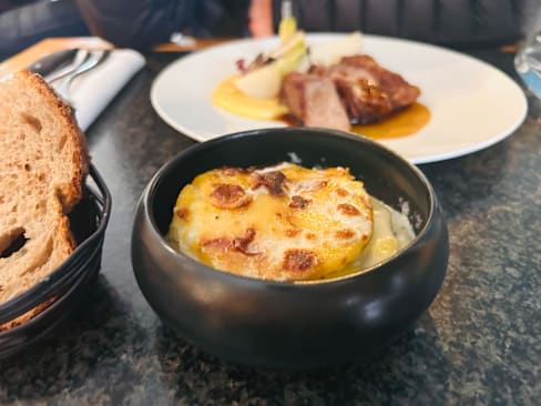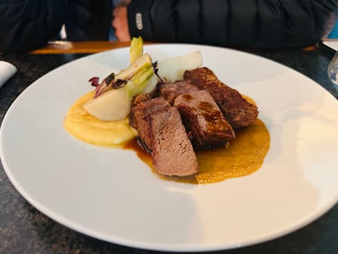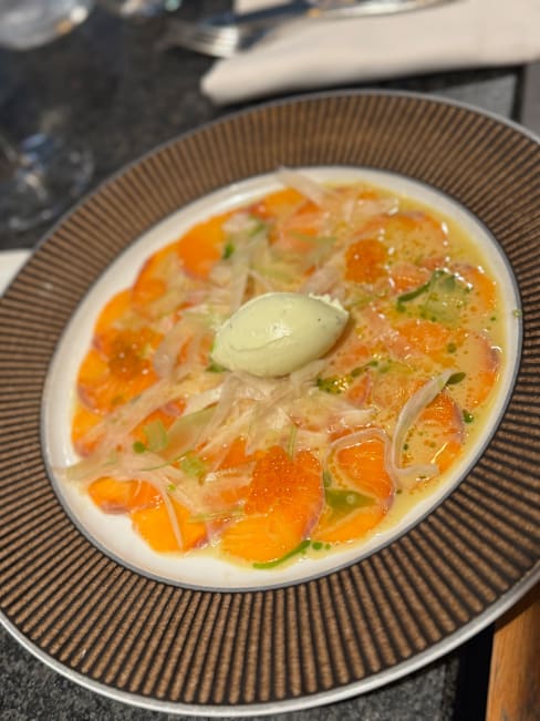 6.5/10+5We arrived early for our 7pm reservation and waited 5 minutes in the hotel lobby. We were seated in a small section by the door and lobby. Very disappointed with the seating location given that they just opened and the entire place was empty. This small cold area with 4 tables has multiple sound systems playing different music from the other areas which is problematic. Two people in our party have hearing disabilities and it made the dining experience very poor for us. The food was ok but not to the level of Michelin. We had the 3 course menus. Some of the food temperature was cool. I did not particularly find the steak to be great. Perhaps the rare was a bit too rare and the dish was not hot. The potatoes were very good and served hot. My daughter got the cheese tray and it must of been the first slices of the night. She turned the pieces over and you could see they were dried out ends. A bit disappointed in the overall experience.