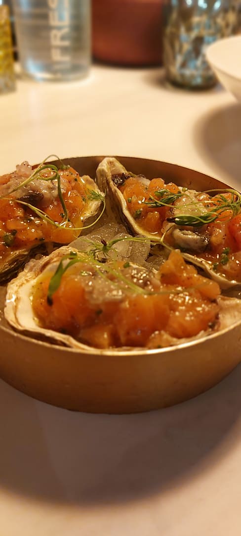 4/10Our food was cold, none of the hot dishes were very hot. The salmon and oyster tartar only had one oyster cut in half. The chicken was undercooked. The gnocchi was tough, cold and undercooked.