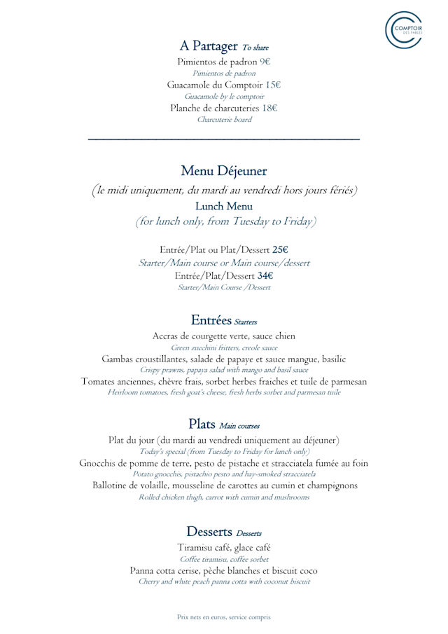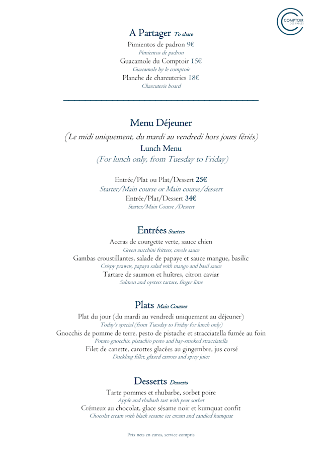 What a pleasure to read your words! We are truly honoured that you consider your experience at Le Comptoir des Fables as the best meal during your stay in Paris. Our team strives to offer both quality and creativity, and your recognition is the most rewarding encouragement. We look forward to welcoming you again very soon for another memorable moment with us. Warm regards, The team at Le Comptoir des Fables