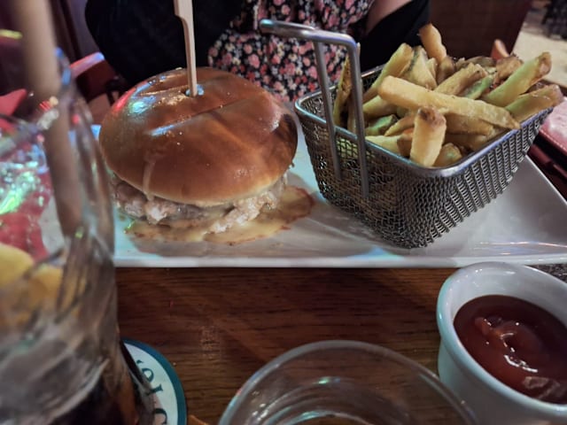 9.5/10Cool place to eat a very good burger with crunchy bread, ideal cooking meat and no greasy french fries! Beer are good too. It is a bit noisy but i recommend this place for a chilling out with friends.