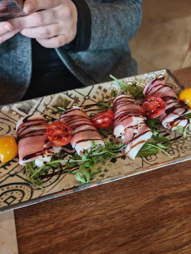 - Carpaccio de picaña de 4o días de maduración, queso pecorino trufado, mozarella, provola y rúcula