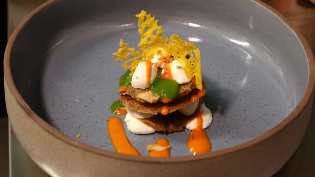 7.5/10Uninterested service until I ordered the waiters favourite dish. Didn't inform us of the daily specials, one of which we would have ordered if we had known. Sheep's cheese sticks were nice but nothing special. Octopus starter was good but slightly over done, sauce however was lovely. Scallop and prawn main was underwhelming, rice needed more flavour, one small bit of prawn and one good sized, well cooked scallop. Urchin gnocchi was good. Ox cheek was nice, slightly dry on the outside despite being souvide- possibly under the grill/heat lamp for too long. Potato side was the stand out of the night for texture and flavour. Tiramisu was good, decent wine list. Portion sizes were on the small side for the price.
