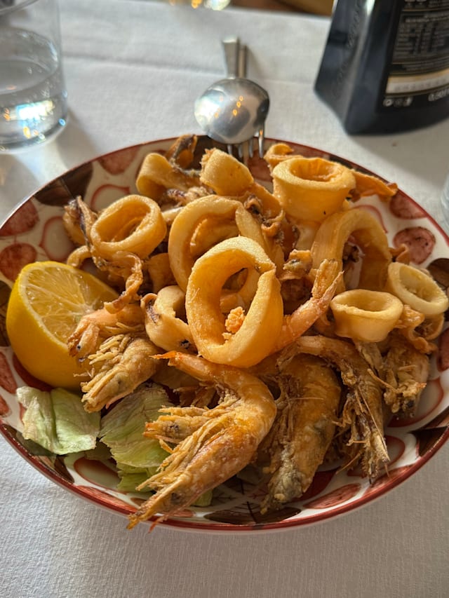 10/10The presentation of the fresh catch pre ordering at the table. Friendly and knowledgeable staff. Ambience of dining area, framed by massive wood doors with view the piazza. Complementary digestives. Enthusiastic sommelier. Delicious and well presented meals.