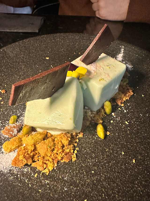 - Mousse de limão, crumble de pistáchio e quinoa achocolatada