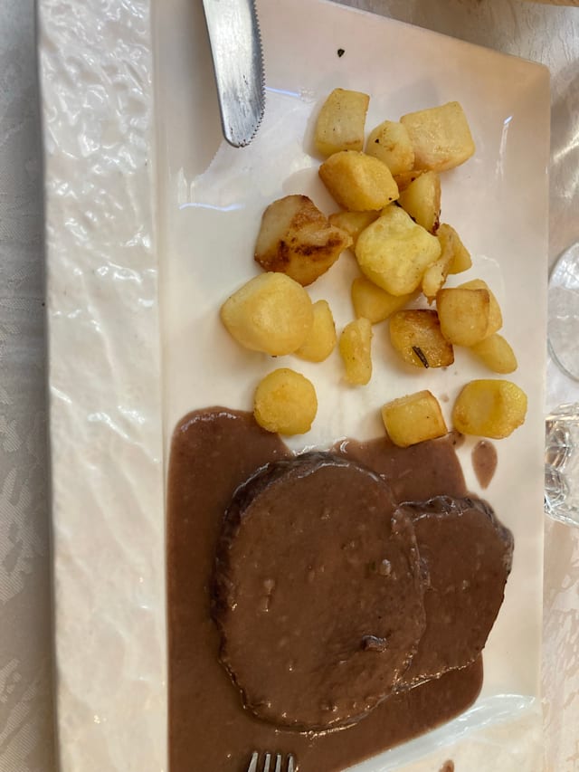 6/10Restaurant is clean but feels a bit outdated. Staff is nice and attentive. Food was good, some Italian classics and some local dishes. We had the vitello tonnato, it was a good portion and quite tasty.