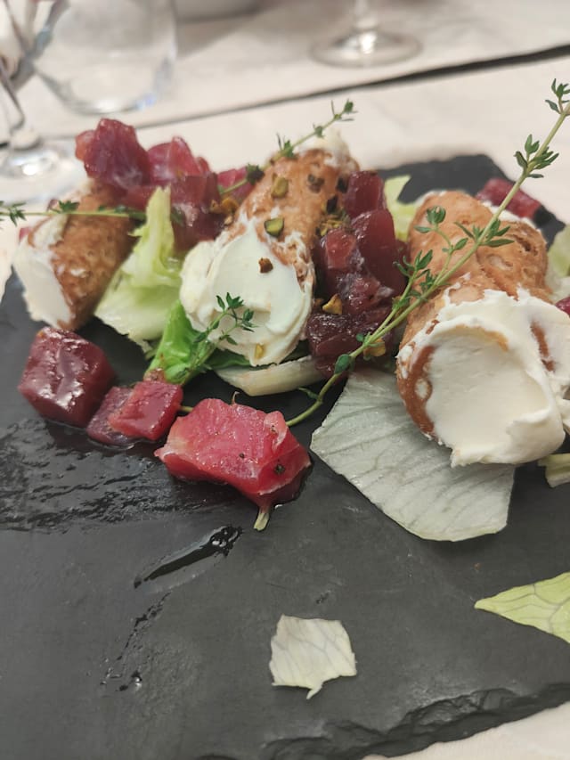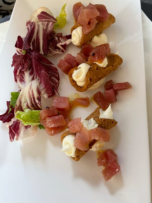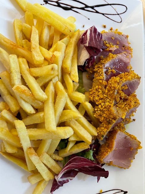 4/10Very sad experience. I realize that the pace has been opened recently. But usually one expects even harder try to win over customers. Sadly the food of this place does not meet the price tag even closely. Fries from the pack and green salad from the pack as well. No sauce. This you get from 28 eur dish…. Well it doesn’t help you to fry tuna with a crust to make it worth the price even close. I was able to get 50% off the food price by booking via TheFork but even this discount does not justify the lack of presentation or the quality of the food. All the same salad in all the dishes we tried. Only the tuna canoli was something more interesting. Not sure who designed the food but there is neither taste nor presentation.