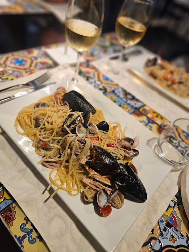 9/10Unlike most Italian restaurants, the food here is mainly seafood and light, which is a good choice. It is worth mentioning that the waiter is very friendly and we received good service. It should be noted that although the wine is on the menu interface provided by the software platform, it does not enjoy a discount, but the rich selection and refreshing and delicious flavor made me order with satisfaction. The environment is also very good. We chose the outdoor seats which were very quiet. We didn't feel cold because they were fully enclosed and had warm lights.