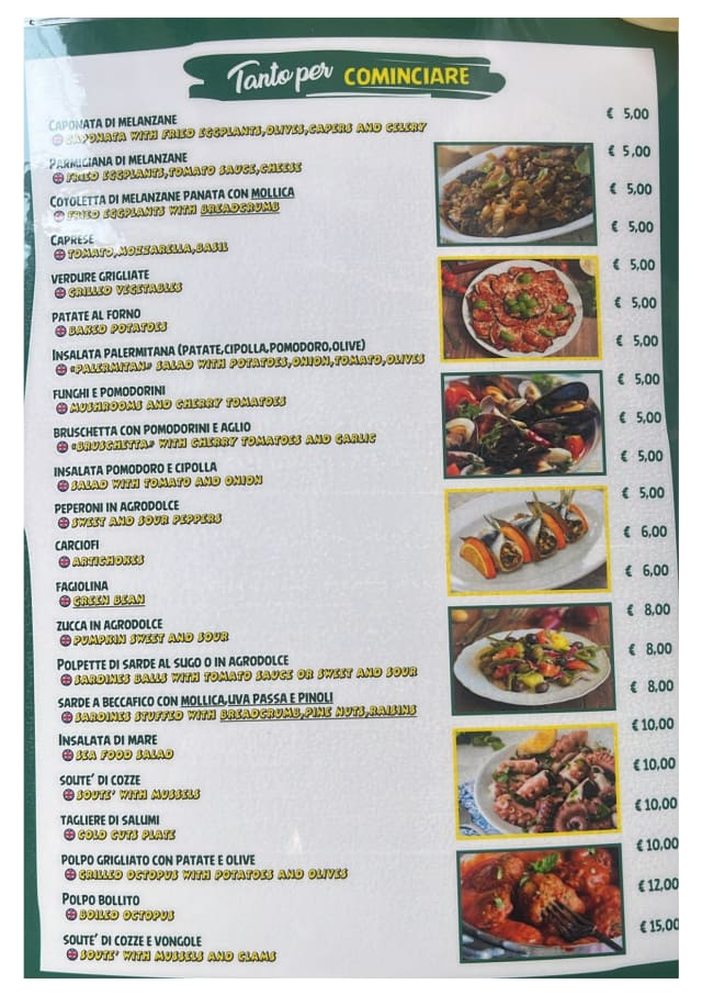 Meat CuisineMediterraneanSeafoodSicilianoTraditional cuisineEuropeanItalianContemporary cuisineTraditionalWith friendsVegetarian dishesAmerican ExpressChildren's menu