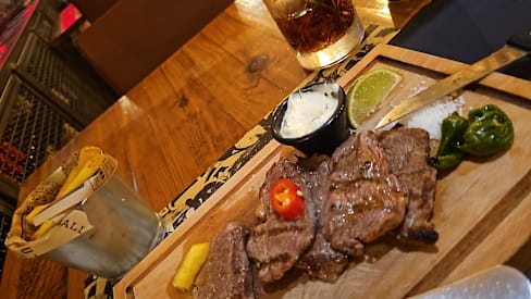 7/10The restaurante has a great environment, service is quick and nice. The food tho… starters came cold, our tacos and burritos also came cold, the texas cheese fries where not crispy, they tasted like yesterday. The only thing really worth it was the T-bone.