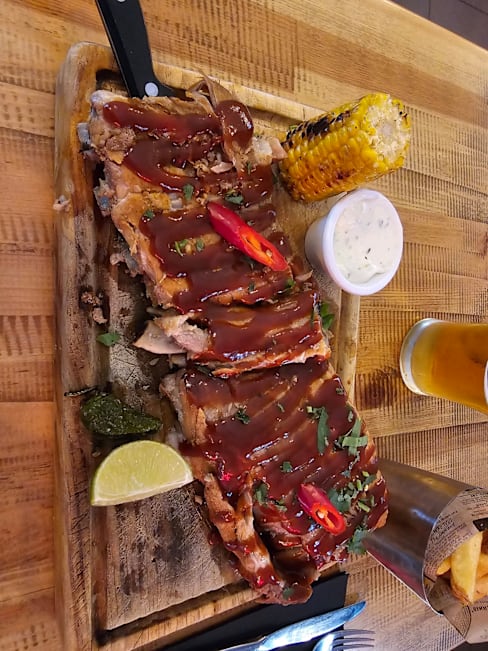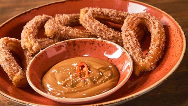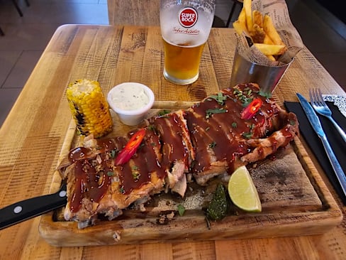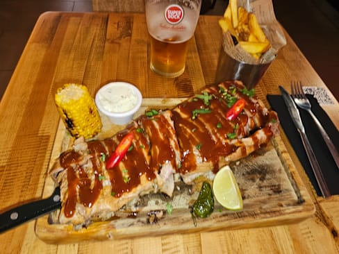 8/10+1Nice, informal Mexican/Meat specialized eatery. My first experience with contrabando was in their other restaurant in the 24 Julho Avenue in the southernmost Lisbon area. Contrabando Saldanha keeps the same vibes as the latter, although maybe not as stylish. The food offering is the same. I chose the BBQ Ribs as it was suggested and was mildly pleased by the serving size (includes fries) and the meat's tenderness (it comes straight of the bone, flake-like). The White Chocolate Coulant is a light flavoured, soft dessert that lacks the more intense flavours of some of the other options on the menu but may provide a good option for anyone searching for anything new. All in all, Contrabando is a solid option for a good, informal dine-out experience, with a nice staff.