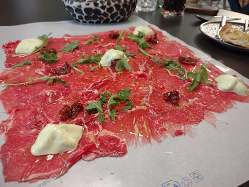 7/10Service was good and carpaccio saved the evening, but burger meat was overdone and there were grains of sand in the salad and not everyone likes it ;)