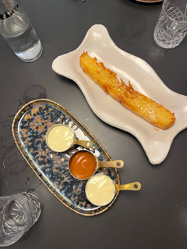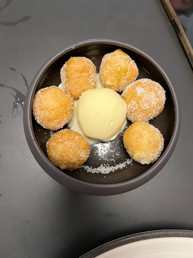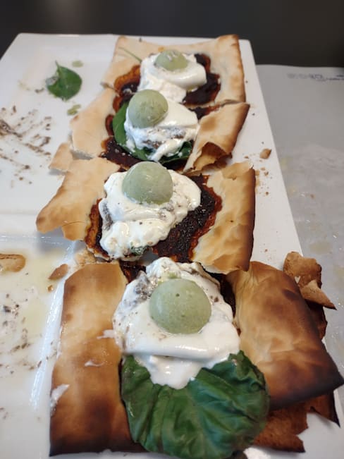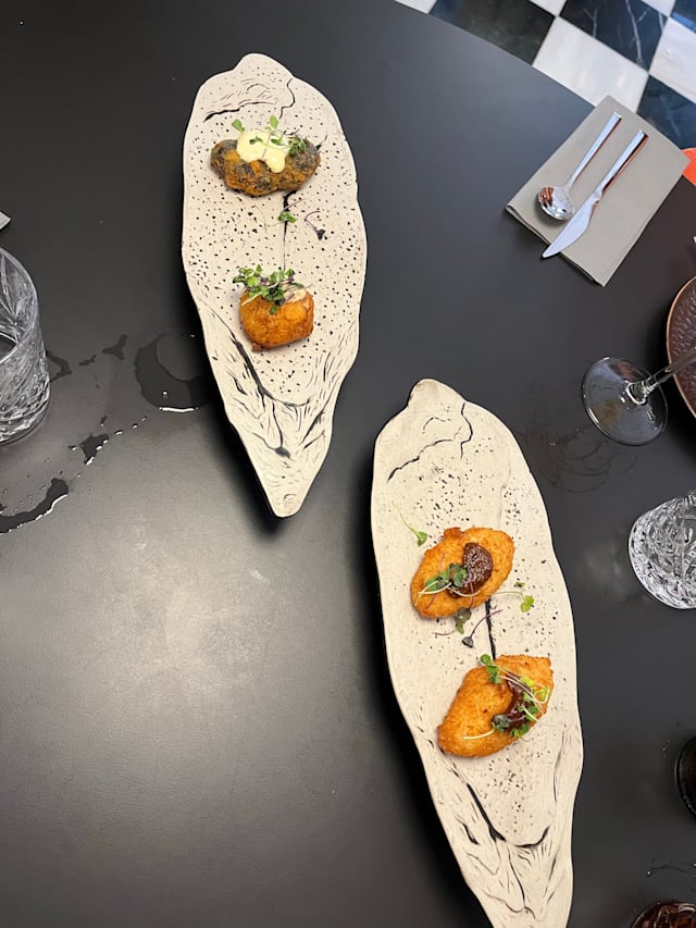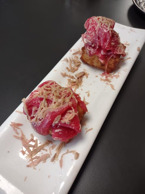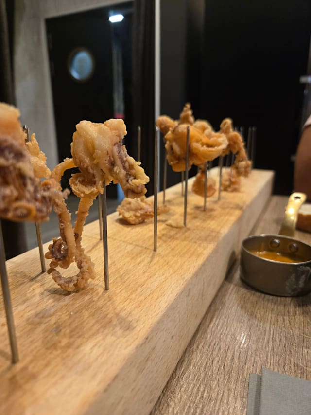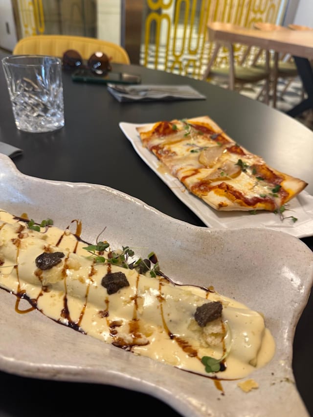 9.5/10wow! not a big pizza person but posible lo mejor pizza de mi vida ???? . interesting squid dish but I didnt love it. bravas was done in a quirky style I had before in toledo, really good ????croquettes were excellent ????and the dessert was exquisite....over all great meal