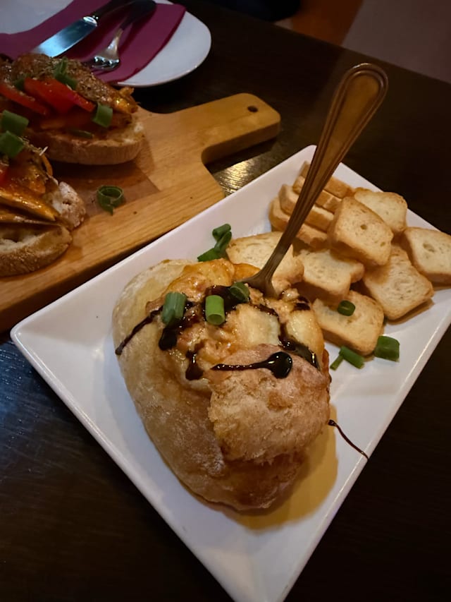 10/10Amazing plates of sharables. We had the white wine clams, token eggs over fries, prawns, mushrooms, and bread & cheese plate. Everything was fantastic!