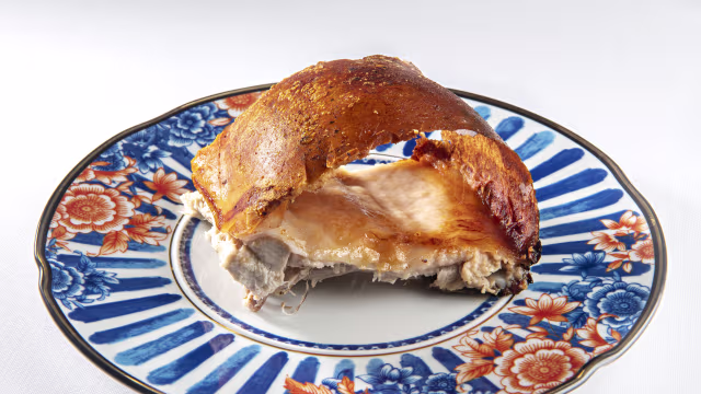 - Cochinillo lechón jugoso y su piel crujiente, chicharrón con pimienta de Sichuan y salsa de melaza. Saam de manita con lemon grass y fruta ácida